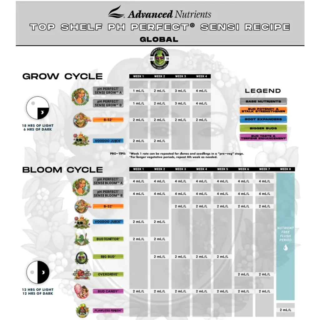 Följ alltid de rekommenderade doserings- och riktlinjerna från Advanced Nutrients. Det är avgörande att konsultera produktetiketten och överväga de specifika kraven för dina växter för att uppnå bästa resultat.