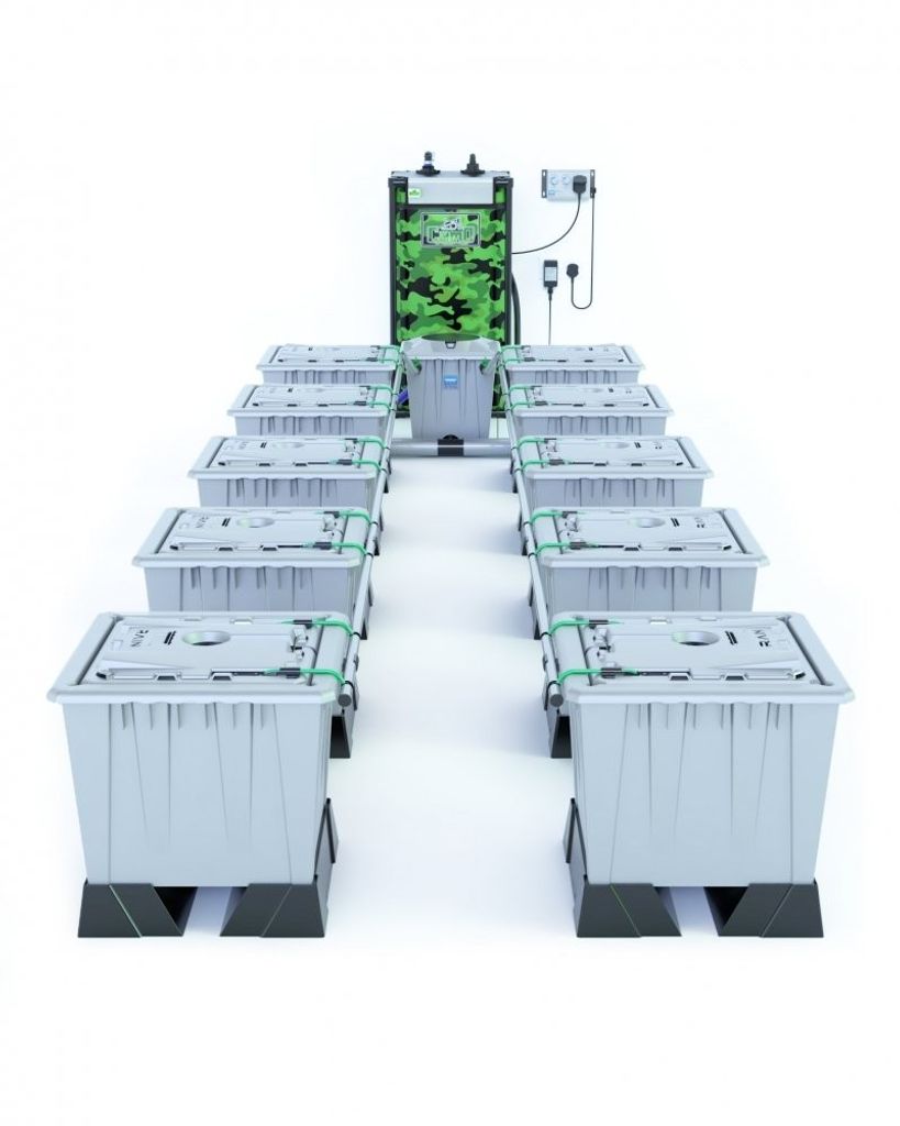 Kommer med 10 st 30L Krukor och Tank som rymmer 280L
