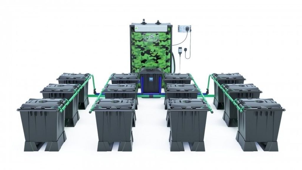 Kommer med 12st Krukor 15L och en tank som rymmer 120L