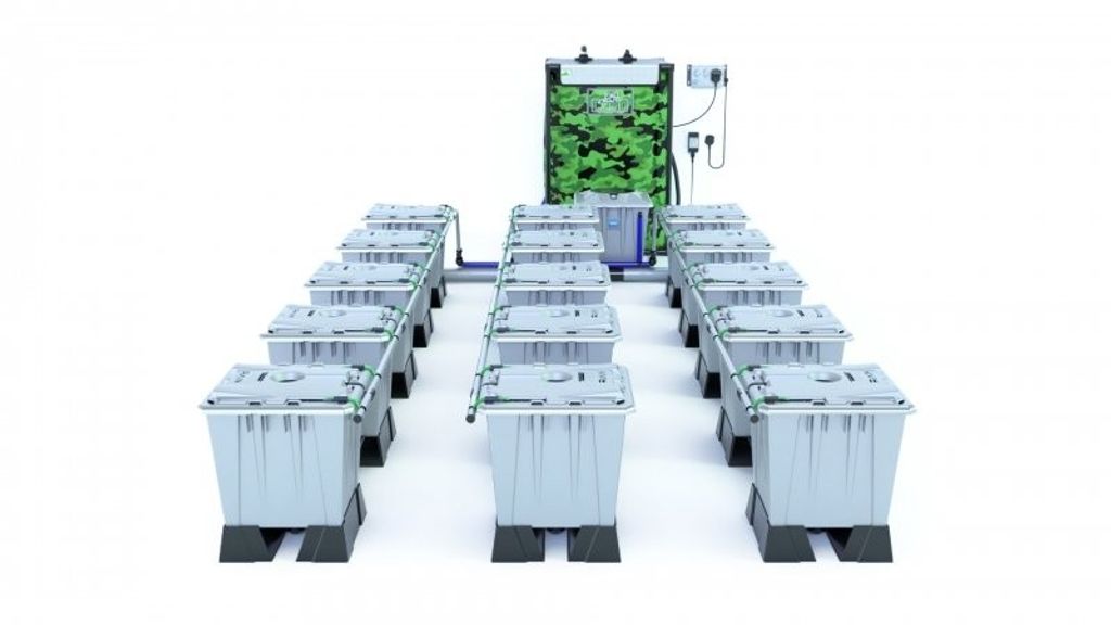 Kommer med 15st 15L krukor och en Tank som rymmer 120L