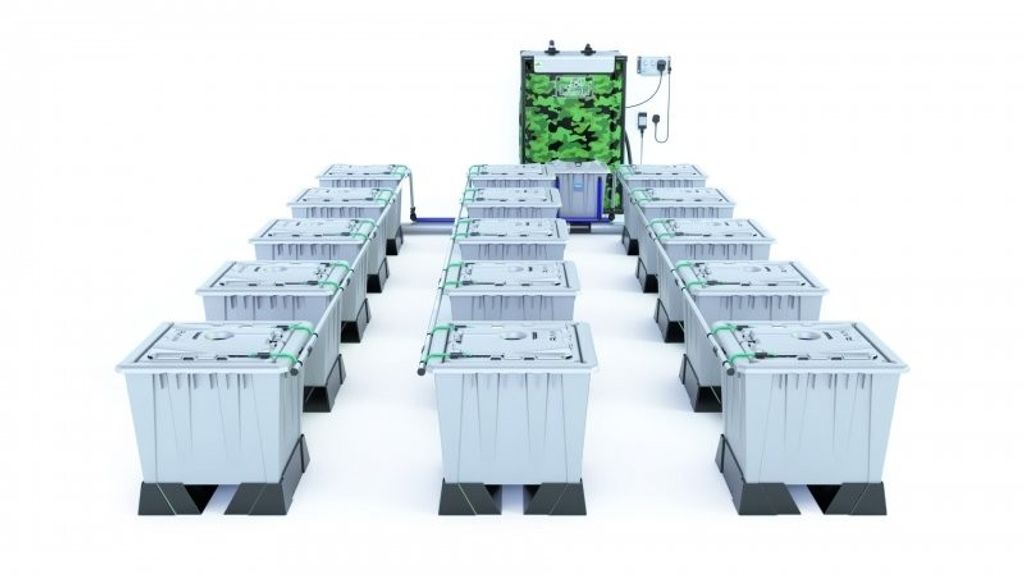 Kommer med 15 st 30L Krukor och en Tank som rymmer 280L