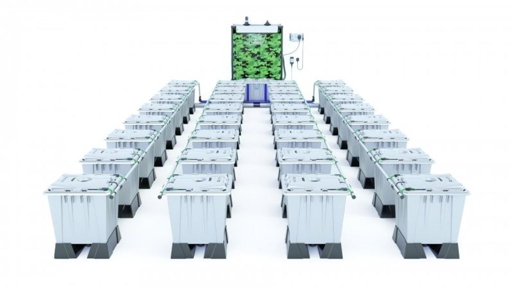 Kommer med 32st 15L krukor och en Tank som rymmer 550L