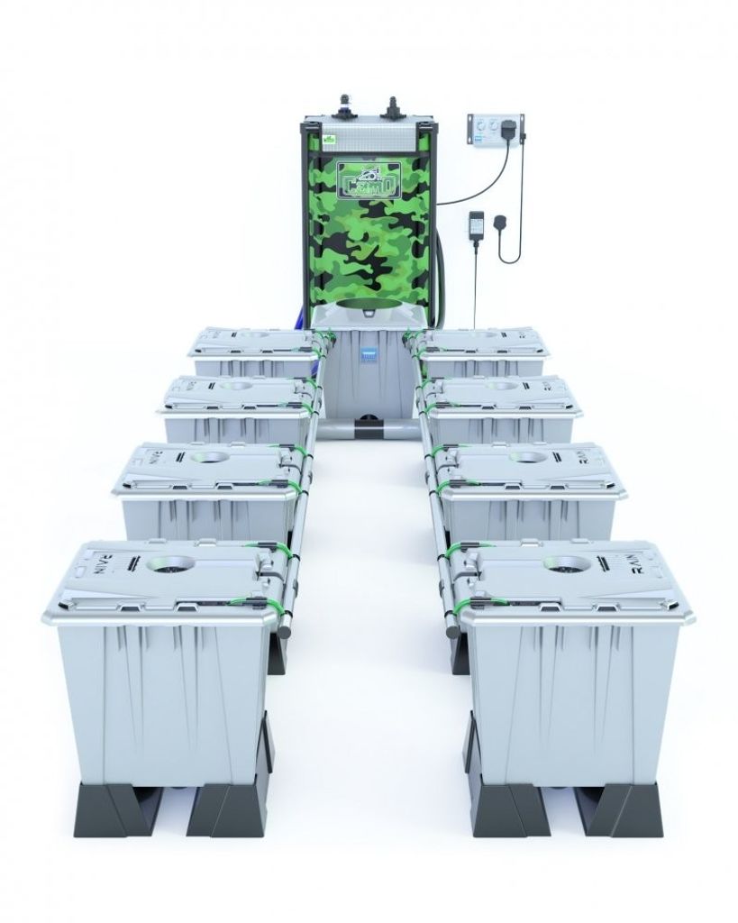 Alien Rain 8 Pot 15L Pro Silver kommer med 8st 15L krukor och en Tank som rymmer 120L.