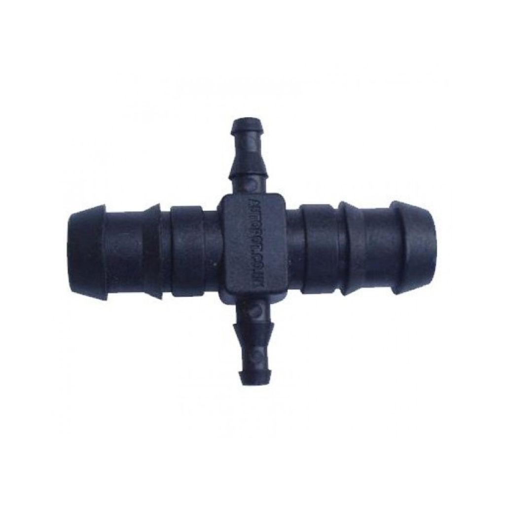 Denna produkt är designad för att ansluta två 16mm med två 6mm, vilket gör att du kan skapa ett mångsidigt system som kan ge vatten till flera växter samtidigt.